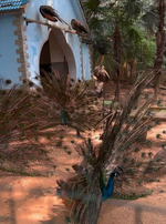高大的樹蔭下,孔雀們像是嫌夏天不夠熱鬧,競相展開華麗的尾屏,引得游客陣陣驚嘆。