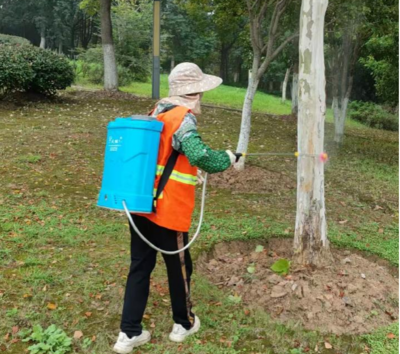 病蟲害阻擊:對(duì)花灌木、高大喬木等易感地老虎,鉆心蟲植物噴灑健歌2%噻蟲啉微襄懸浮劑,易感蚜蟲植物噴灑比蟲琳溶液,發(fā)現(xiàn)食葉害蟲噴灑苦參堿溶液。