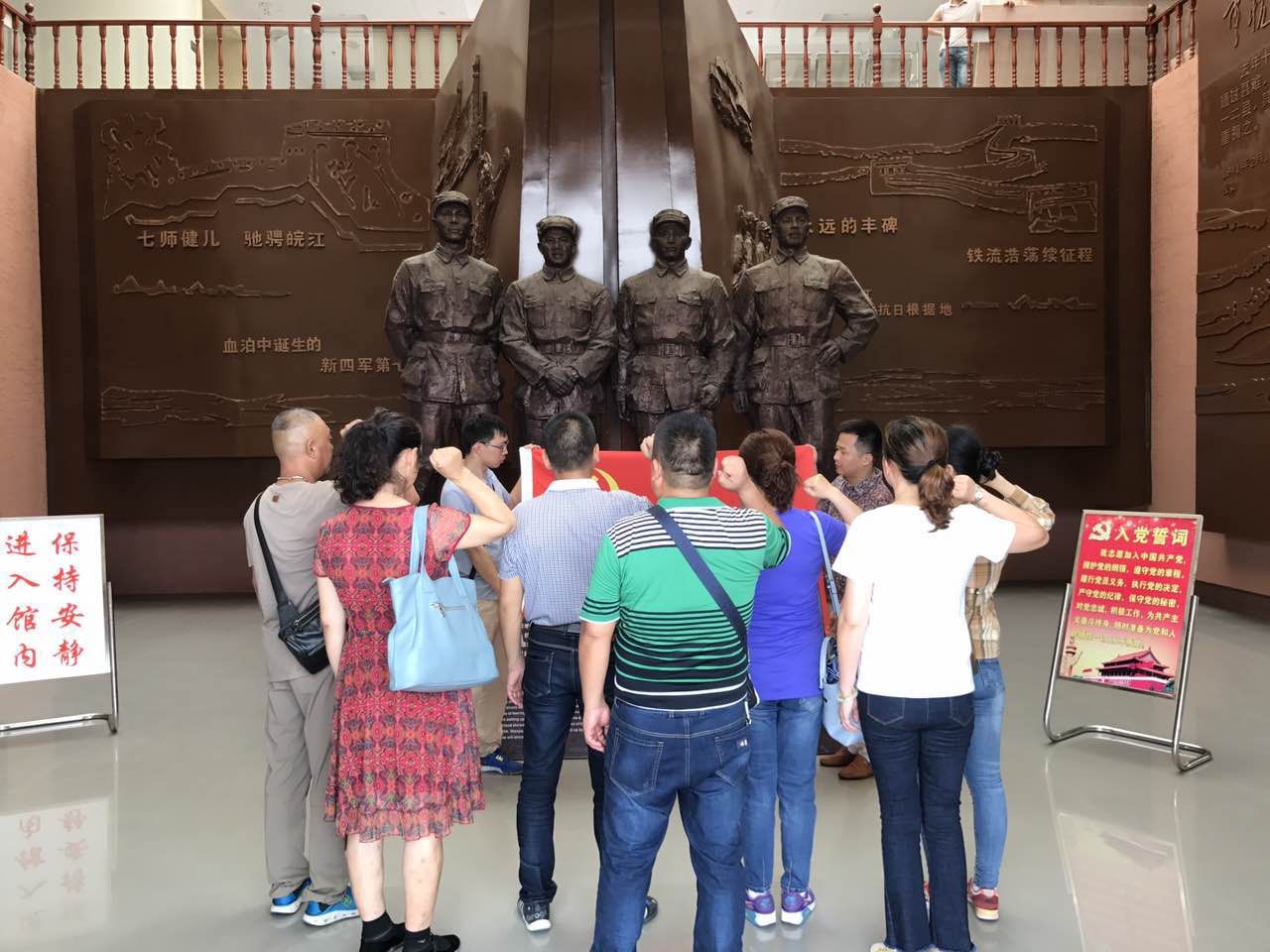 新四軍七師是在皖南事變血泊中誕生的一支革命部隊,是皖江抗日根據(jù)地的中堅力量,在抗日戰(zhàn)爭史上寫下了光輝的一頁。參觀期間,在講解員的引導下,全體黨員干部沿著革命的足跡,先后參觀了"皖江抗日起怒潮"、"血泊中誕生的新四軍第七師"、"第七師健兒馳騁皖江"、"永遠的豐碑"等8個展廳。展館內(nèi),圖文并茂的展板陳列,高科技的聲光電資料,生動還原了新四軍七師的光榮業(yè)績和不朽精神。透過一件件印滿歲月痕跡的文物和一張張珍貴的歷史照片,參觀的黨員同志仿佛看到了當年新四軍七師帶領戰(zhàn)士抗擊日寇,為保家衛(wèi)國、人民解放、建立新中國舍生忘死、浴血奮戰(zhàn)、頑強抗爭、先赴后繼的壯烈場景,大家的心靈深受震撼,為革命先烈拋頭顱灑熱血,不怕犧牲、不屈不撓的革命精神深深感動。紛紛表示,要永遠銘記革命先烈的英雄事跡,永遠以先烈的精神激勵、鞭策自己,努力提高思想覺悟和政治素質(zhì),堅定理想信念、純潔黨性、牢記宗旨,在本職崗位上作好表率、扎實工作,爭做合格黨員,用實際行動踐行“兩學一做”,推動公司又好又快發(fā)展。