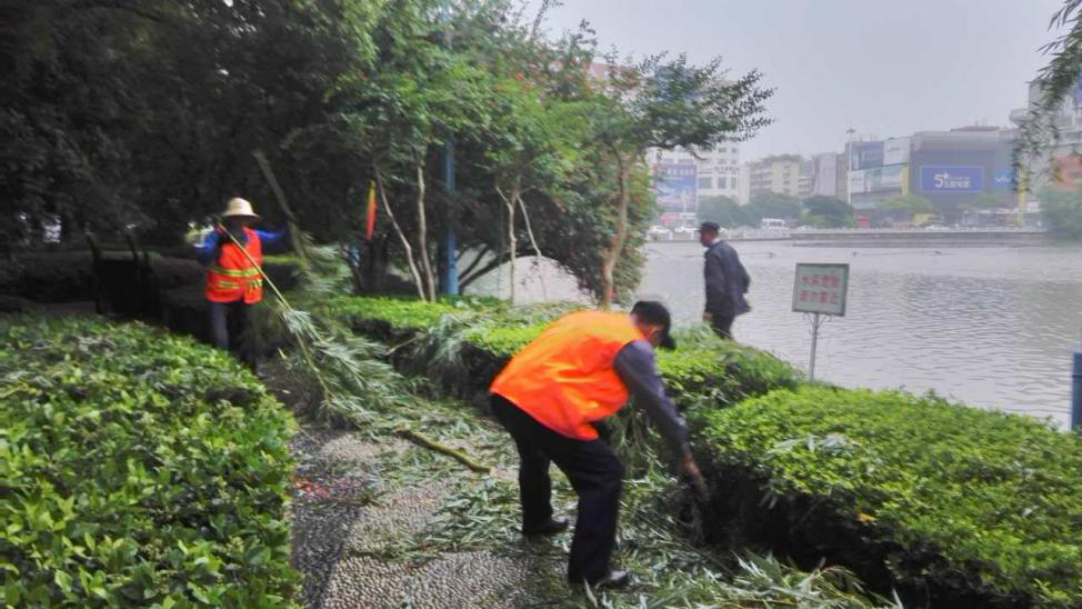 5月18日,一場(chǎng)突降暴雨嚴(yán)重影響了我市的道路交通和出行安全,市區(qū)鏡湖公園、九蓮塘公園等多處公園受損嚴(yán)重。藍(lán)綠園林物業(yè)管理有限責(zé)任公司緊急啟動(dòng)災(zāi)害天氣應(yīng)急預(yù)案,公司上下全力動(dòng)員,加班加點(diǎn),力求保證市民的出行安全。