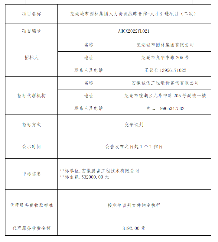 蕪湖城市園林集團(tuán)人力資源戰(zhàn)略合作-人才引進(jìn)項(xiàng)目(二次)中標(biāo)結(jié)果公示