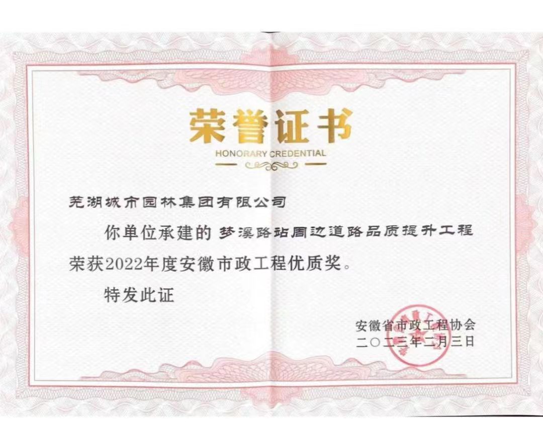 近日,蕪湖城市園林集團(tuán)承建的夢(mèng)溪路站周邊道路品質(zhì)提升工程項(xiàng)目、南陵縣城市出入口一期及街頭小景綠化提升工程,榮獲“2022年度安徽省市政工程優(yōu)質(zhì)獎(jiǎng)”;承接的蕪湖市市管公園養(yǎng)護(hù)工程喜獲安徽省園林綠化優(yōu)質(zhì)工程“徽?qǐng)@杯”養(yǎng)護(hù)類金獎(jiǎng),王啟潤(rùn)同志榮獲“優(yōu)秀項(xiàng)目負(fù)責(zé)人”稱號(hào)。