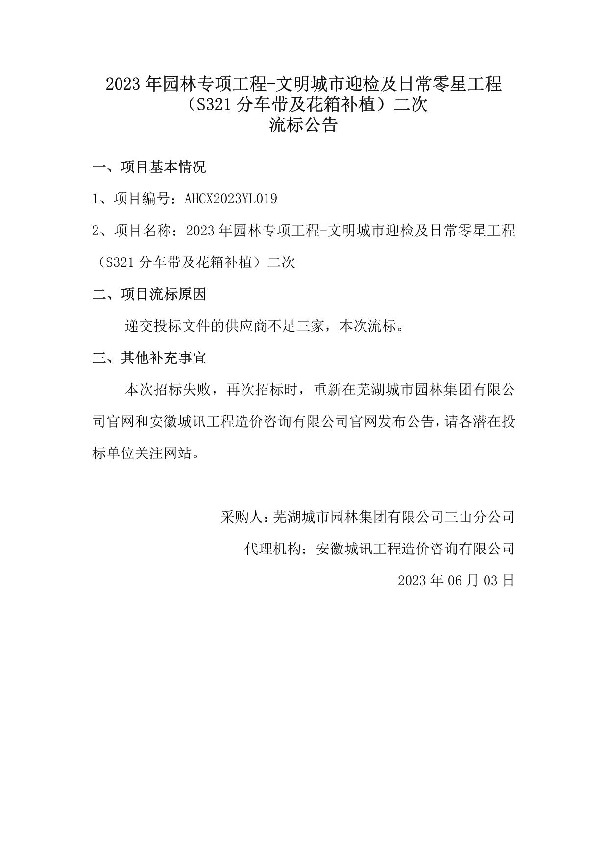 2023年園林專項工程-文明城市迎檢及日常零星工程(S321分車帶及花箱...