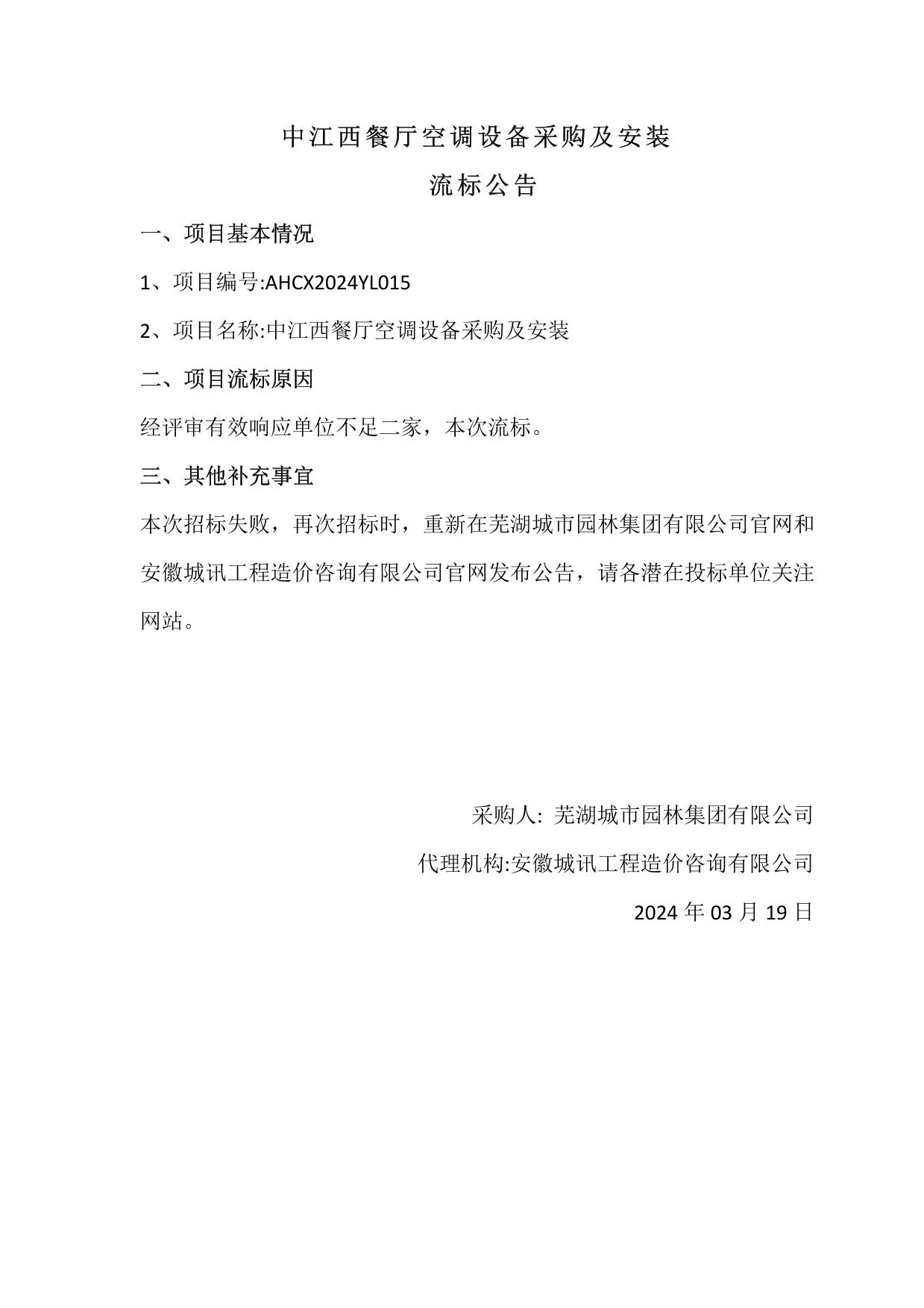 中江西餐廳空調(diào)設(shè)備采購(gòu)及安裝流標(biāo)公告