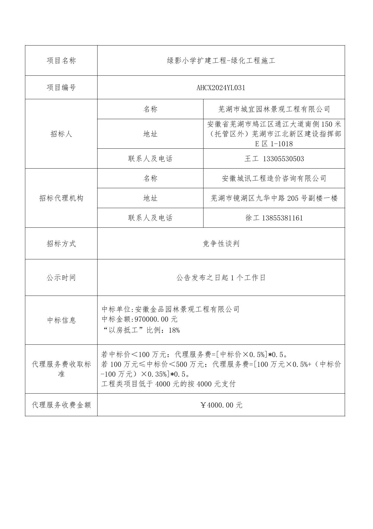 綠影小學(xué)擴建工程-綠化工程施工成交結(jié)果公告