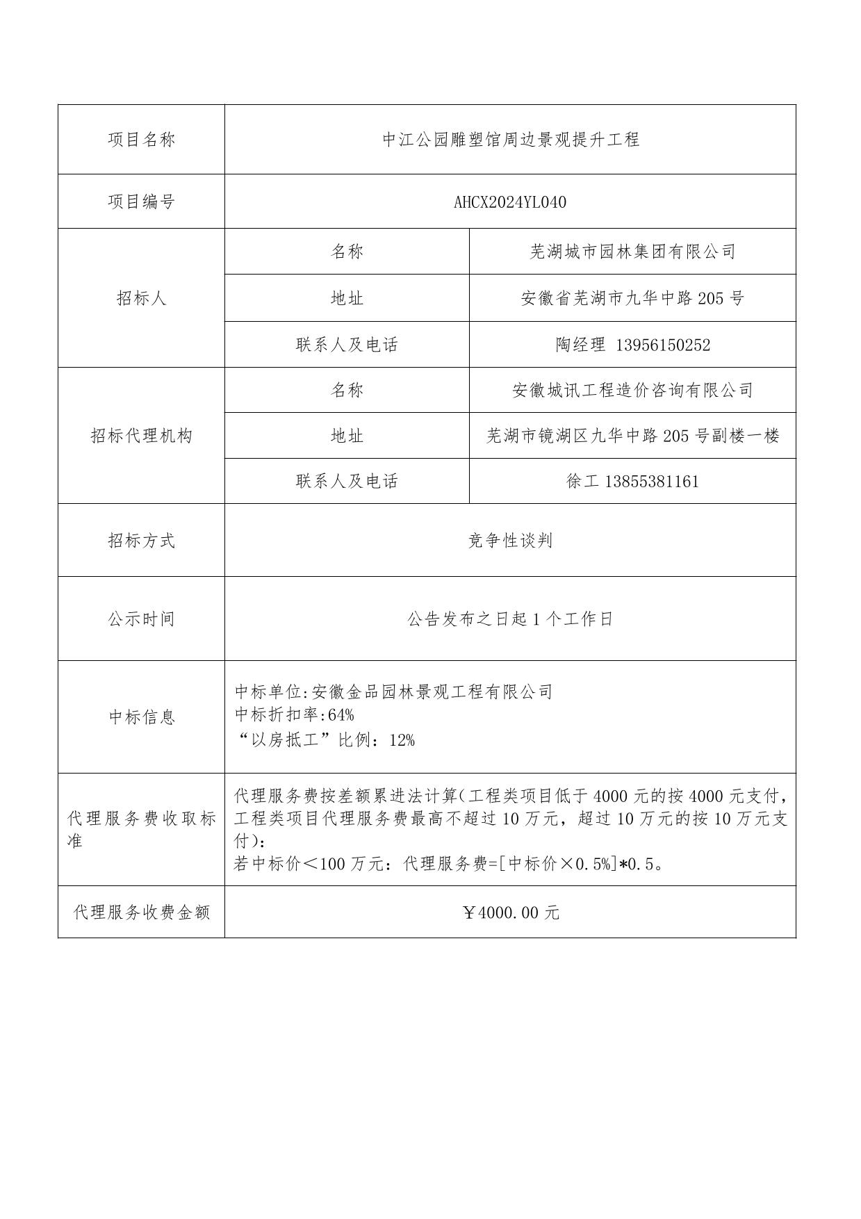 中江公園雕塑館周邊景觀提升工程成交結(jié)果公告